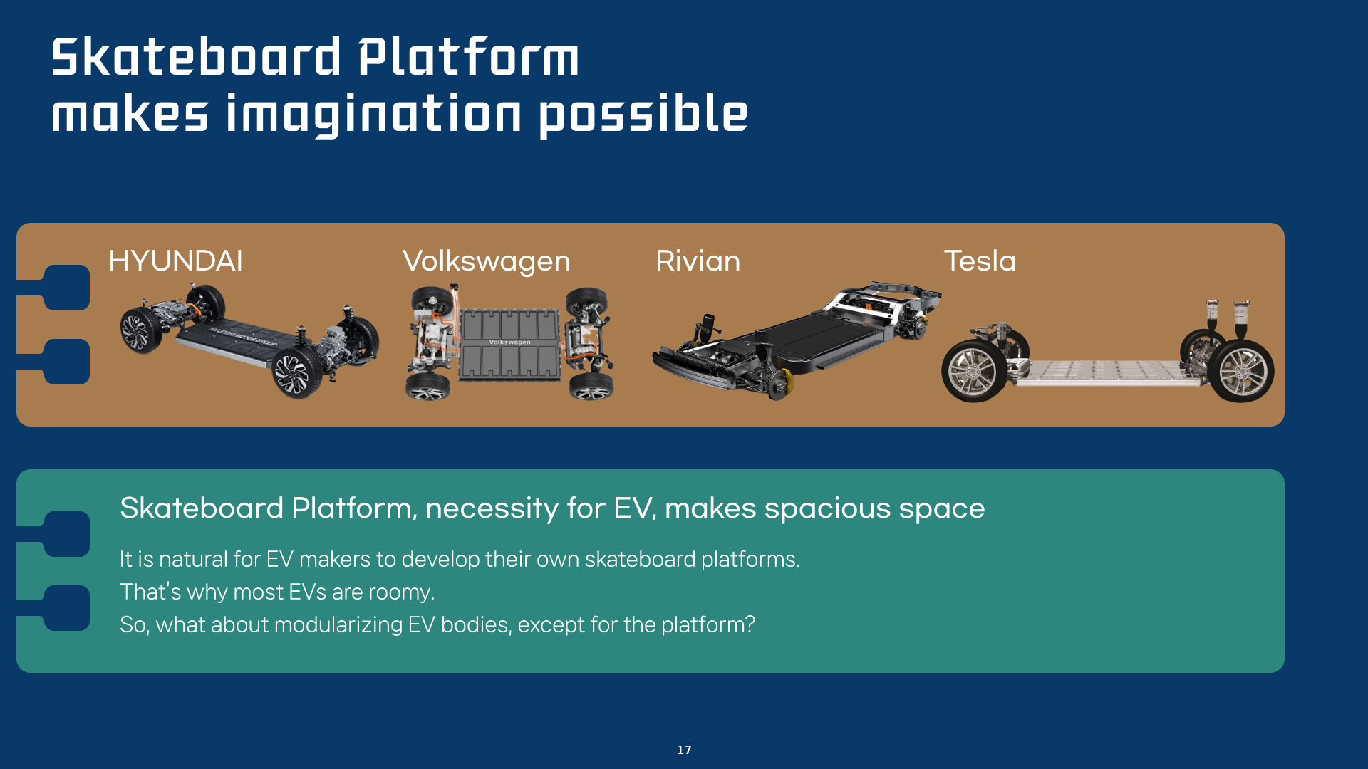 We can modularize EV upper bodies by leveraging the skateboard platform.
